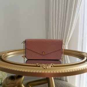$142.51The product is a Louis Vuitton Pochette Félicie in Monogram Empreinte Leather, specifically featured in the color Rose Poudre. -