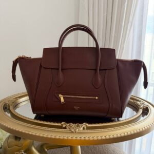 $143.08This is a Celine Medium New Luggage handbag crafted from supple shiny lambskin in a deep brown color. -