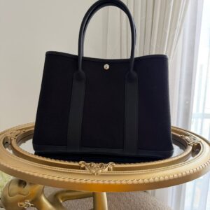 $198.73This item is a black Hermès Garden Party tote bag, commonly found in sizes like 30cm or 36cm, crafted from Toile H canvas and Negonda… -
