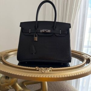 $198.73The item in the image is a Hermès Birkin 30 Black Matte Porosus Crocodile handbag with Palladium hardware. -