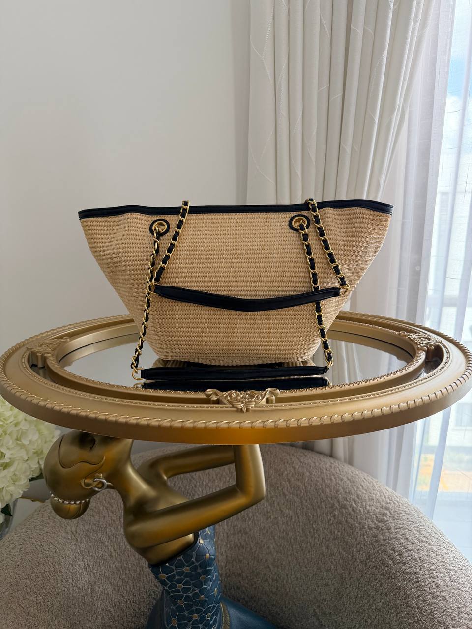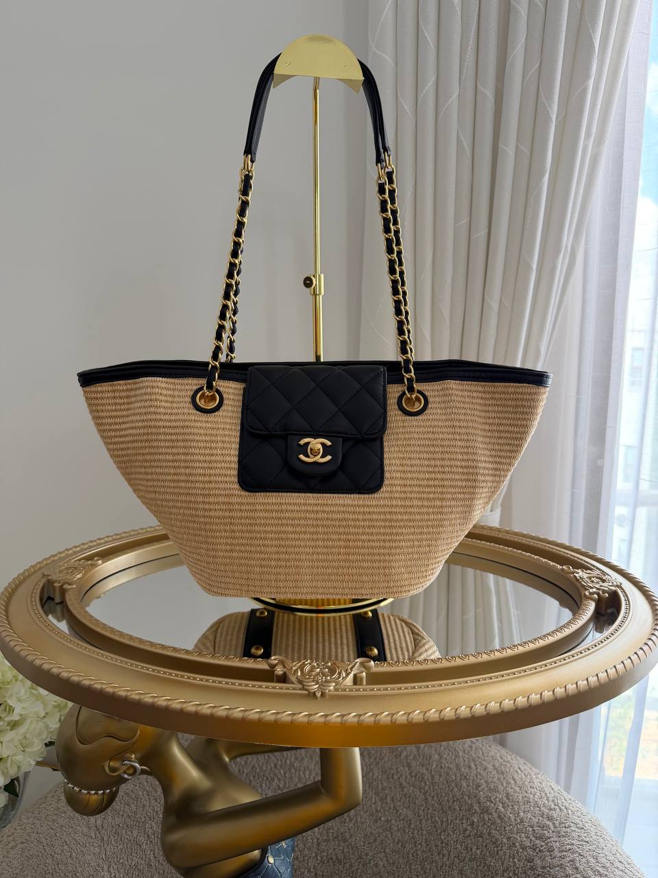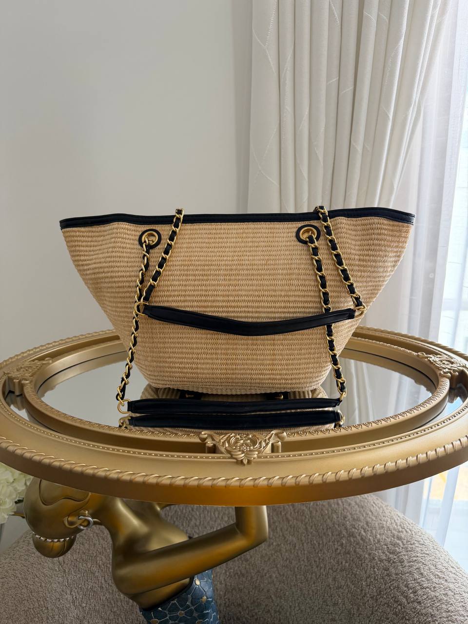 Chanel woven raffia tote bag