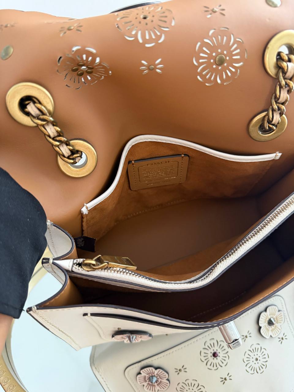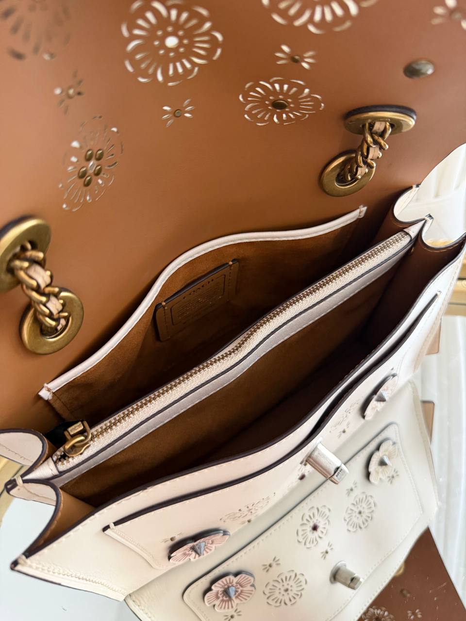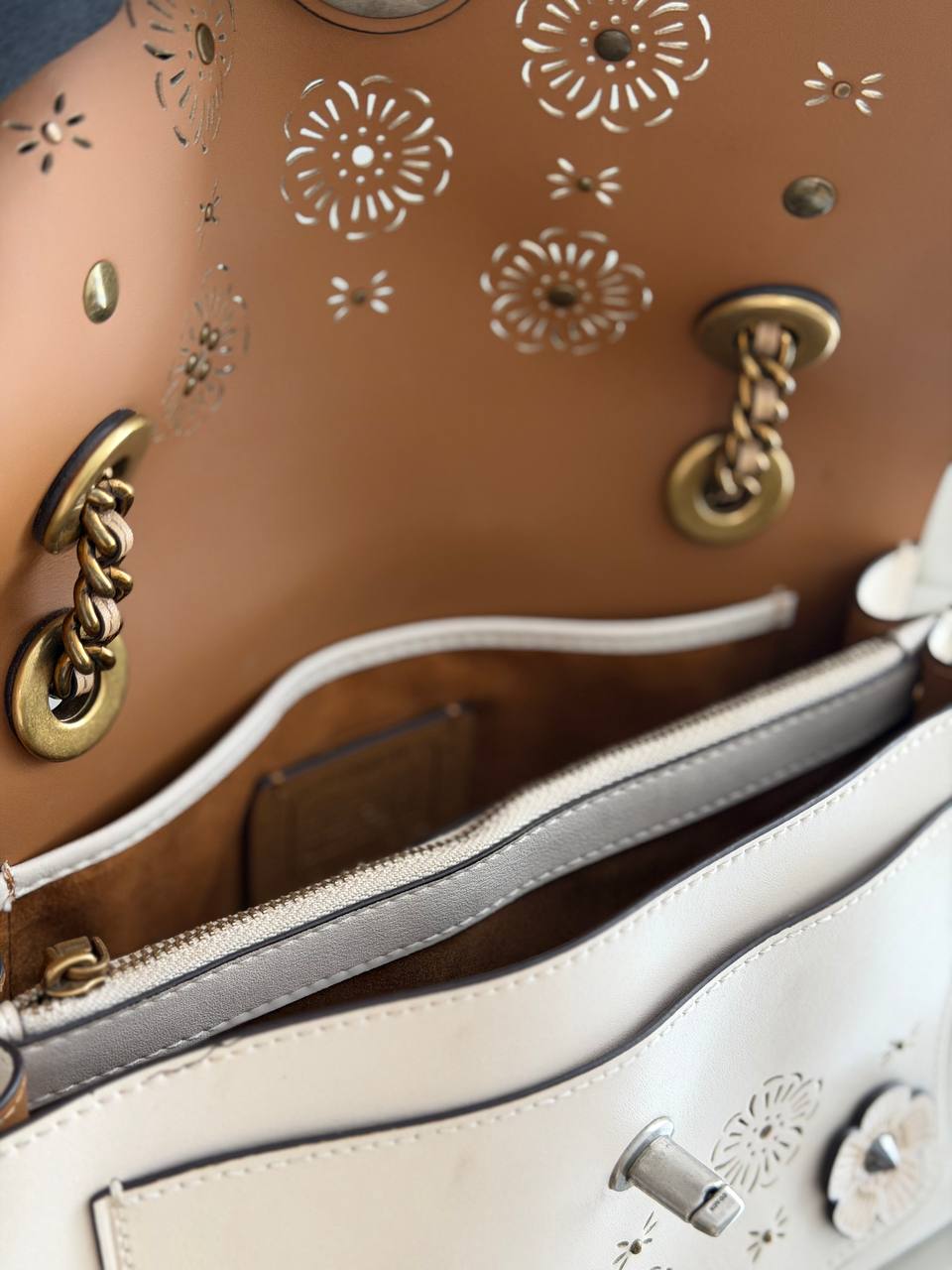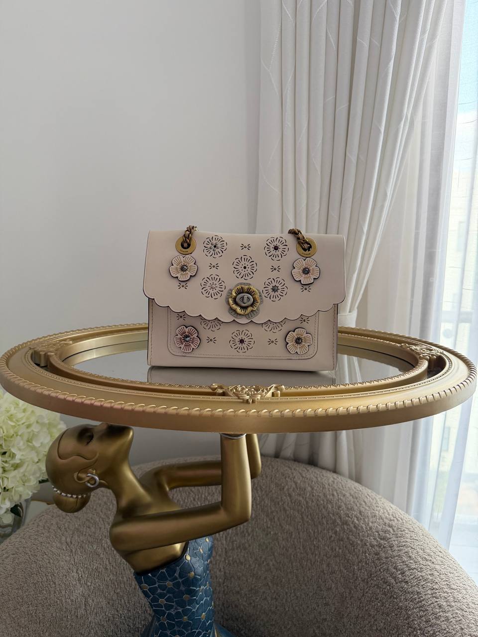 This item is a COACH Parker Small Shoulder Bag with Cut Out Tea Rose.