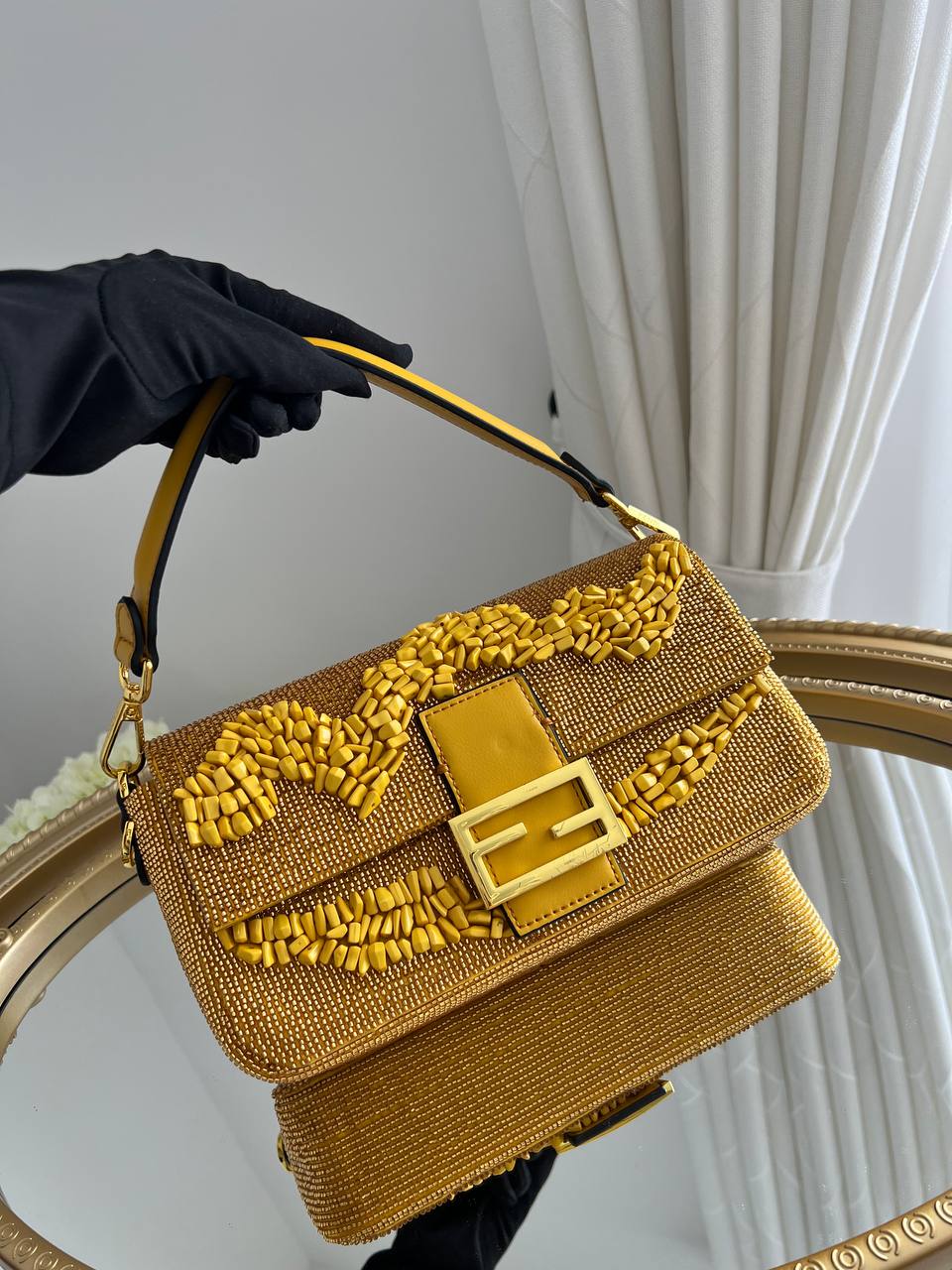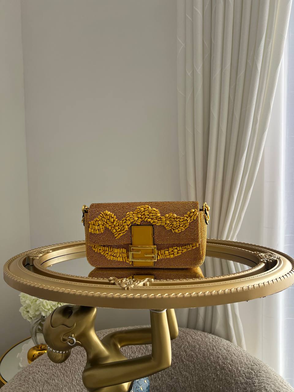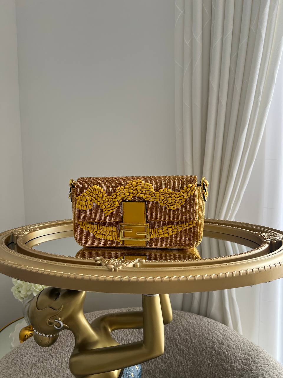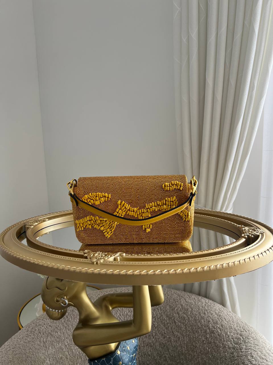 Fendi Limited Edition Yellow Gialla Beaded Baguette Bag