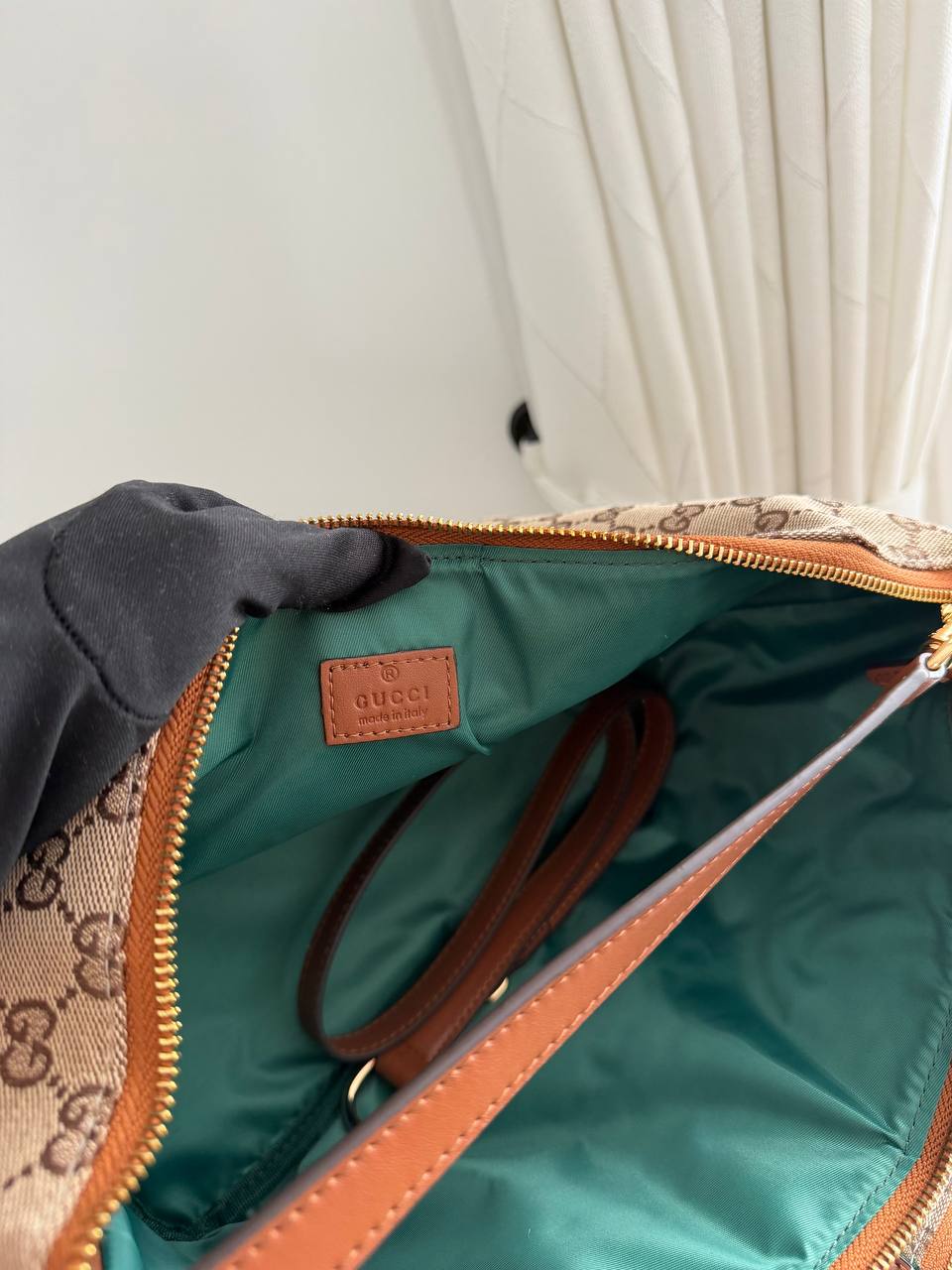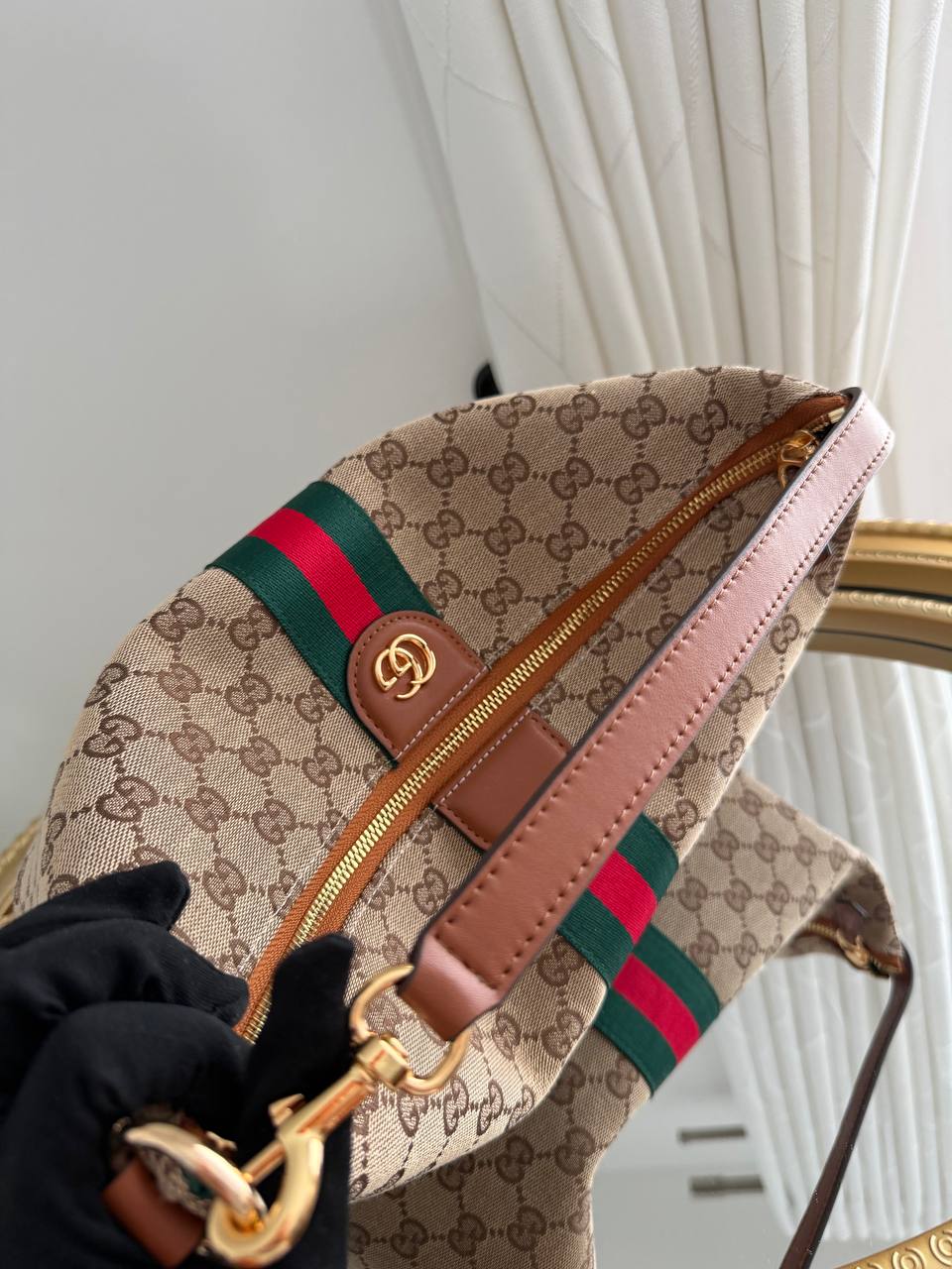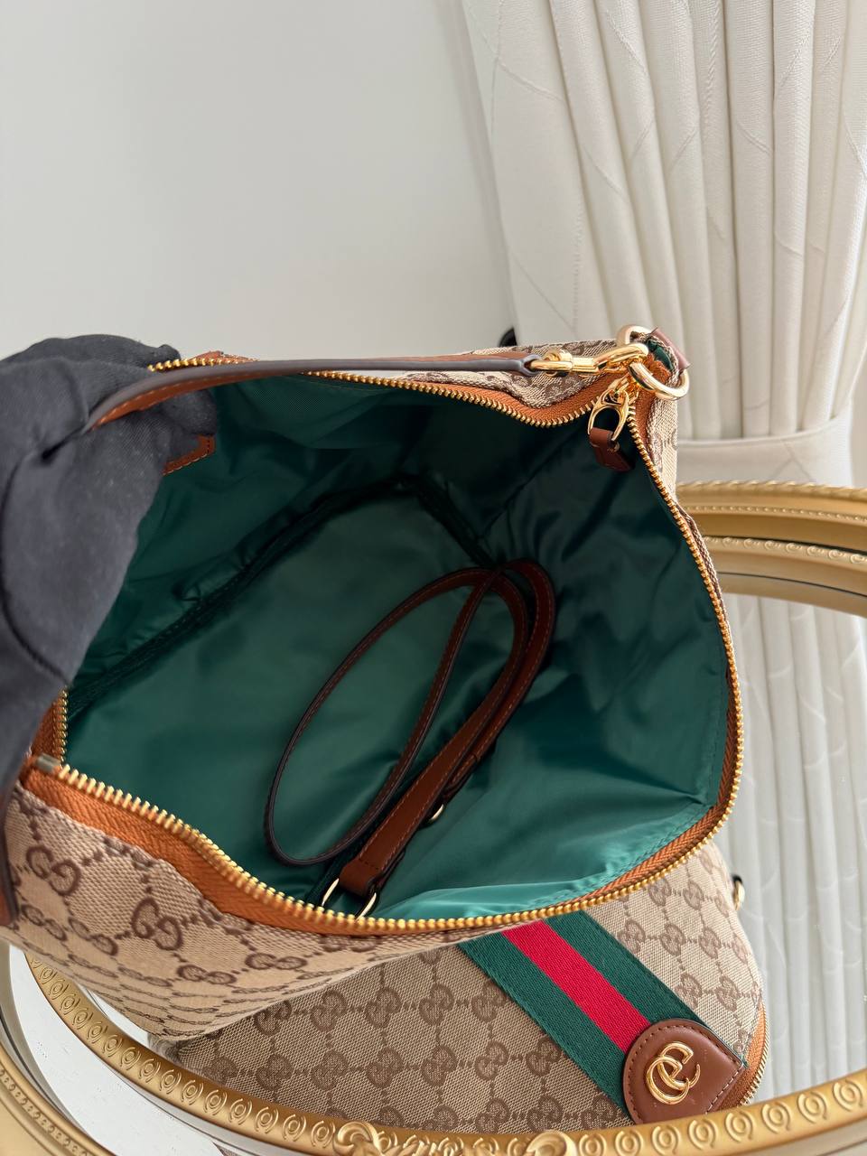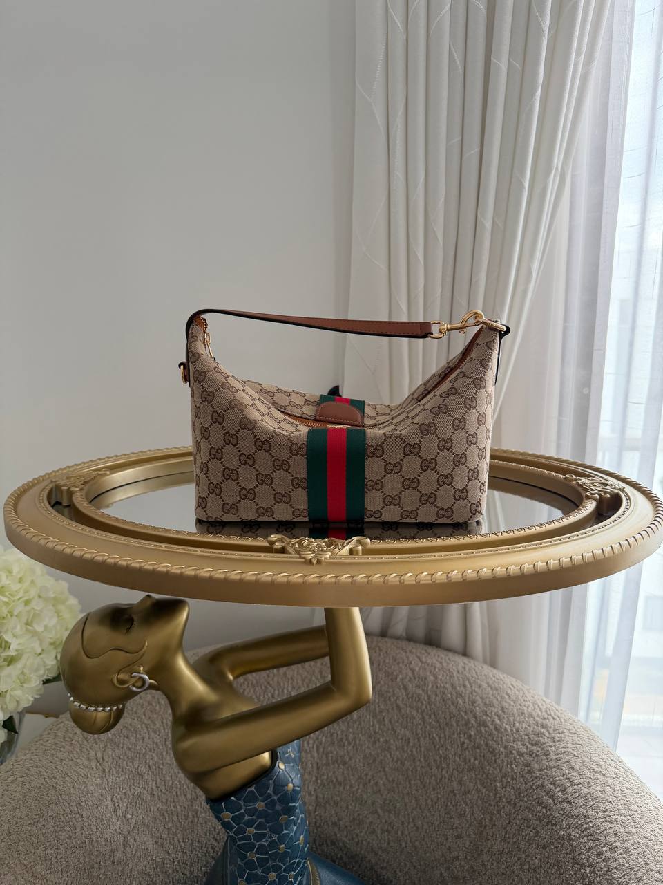 The product is a Gucci Vanity Medium Top Handle Bag featuring the brand’s recognizable web stripe and GG canvas.