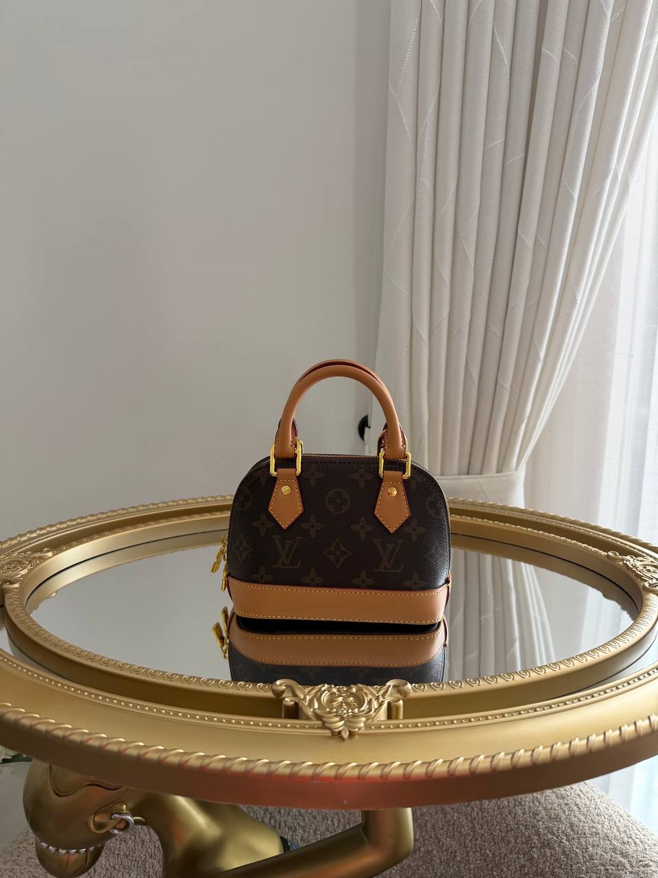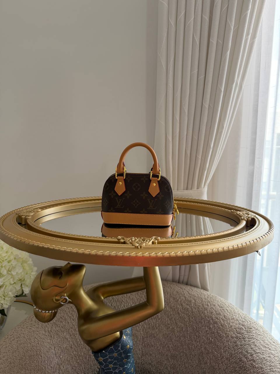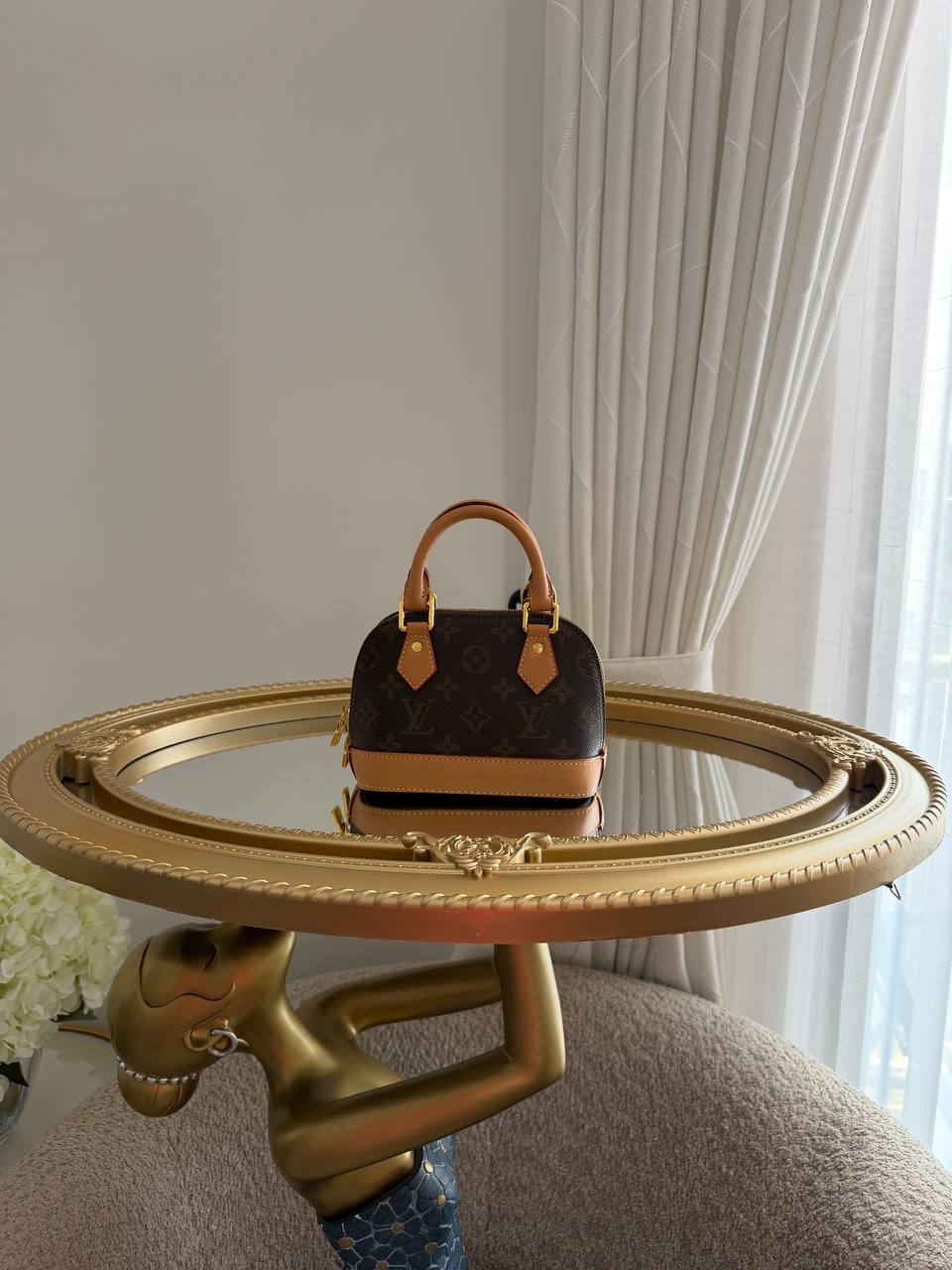 The bag is a Nano Alma in Louis Vuitton’s signature Monogram canvas.