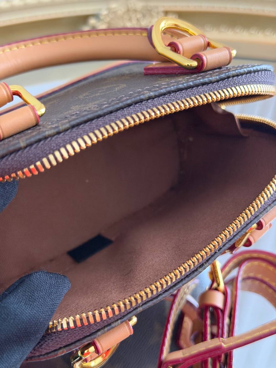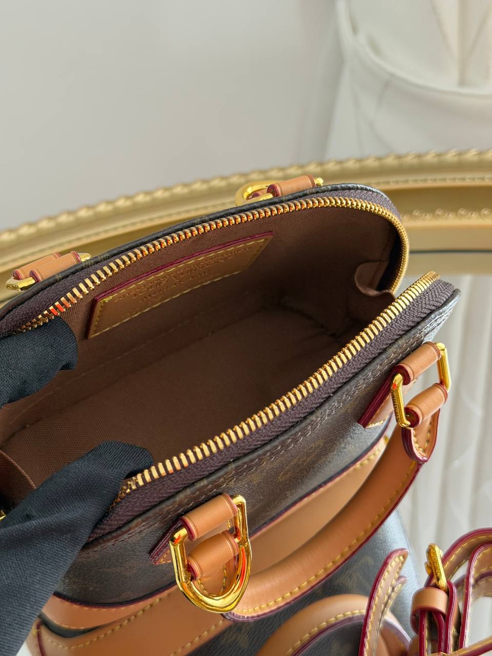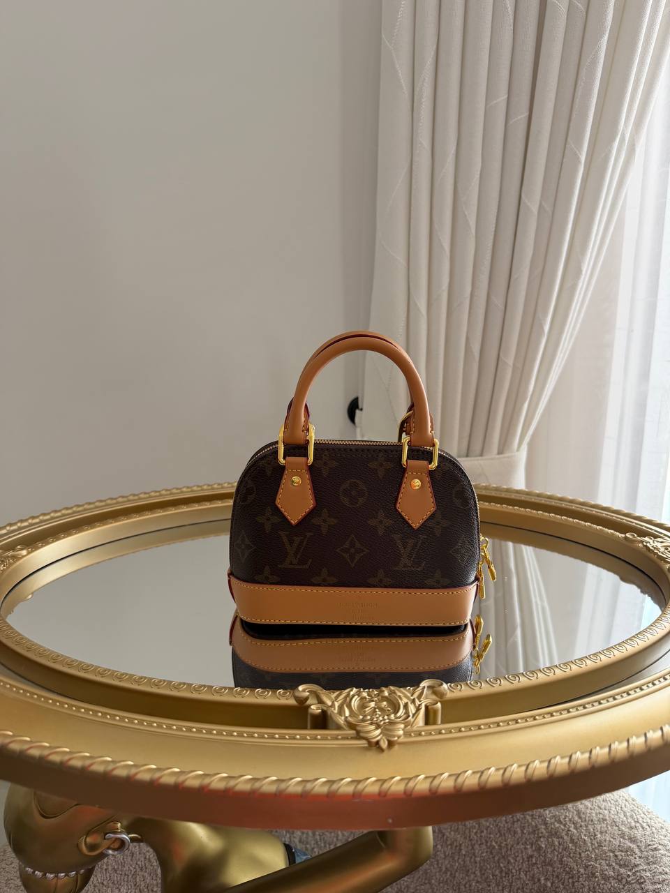 The bag is a Nano Alma in Louis Vuitton’s signature Monogram canvas.