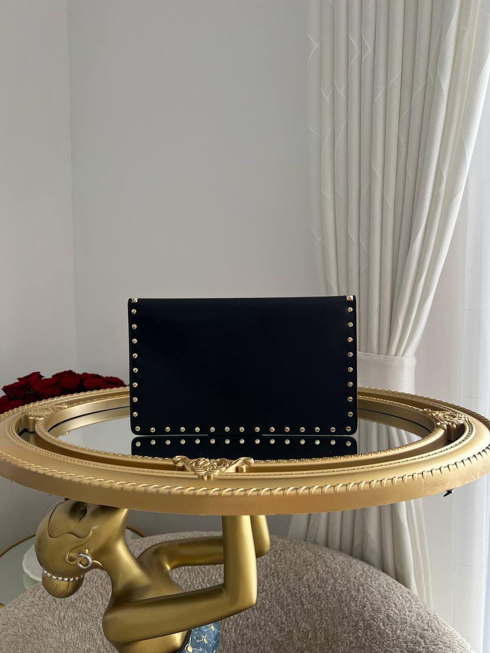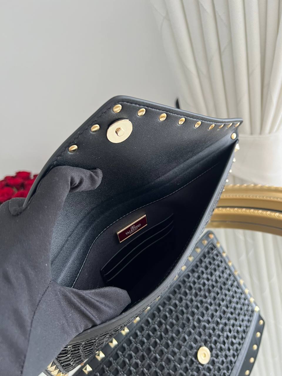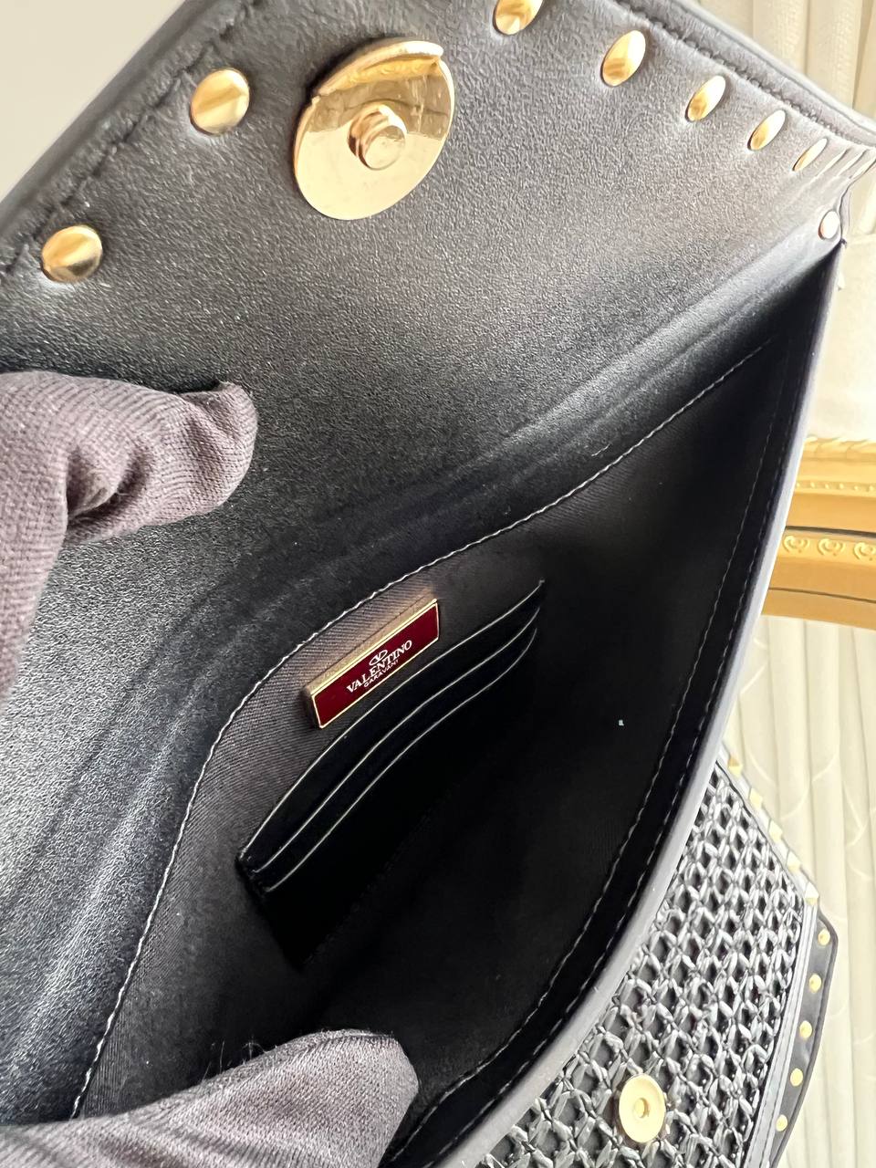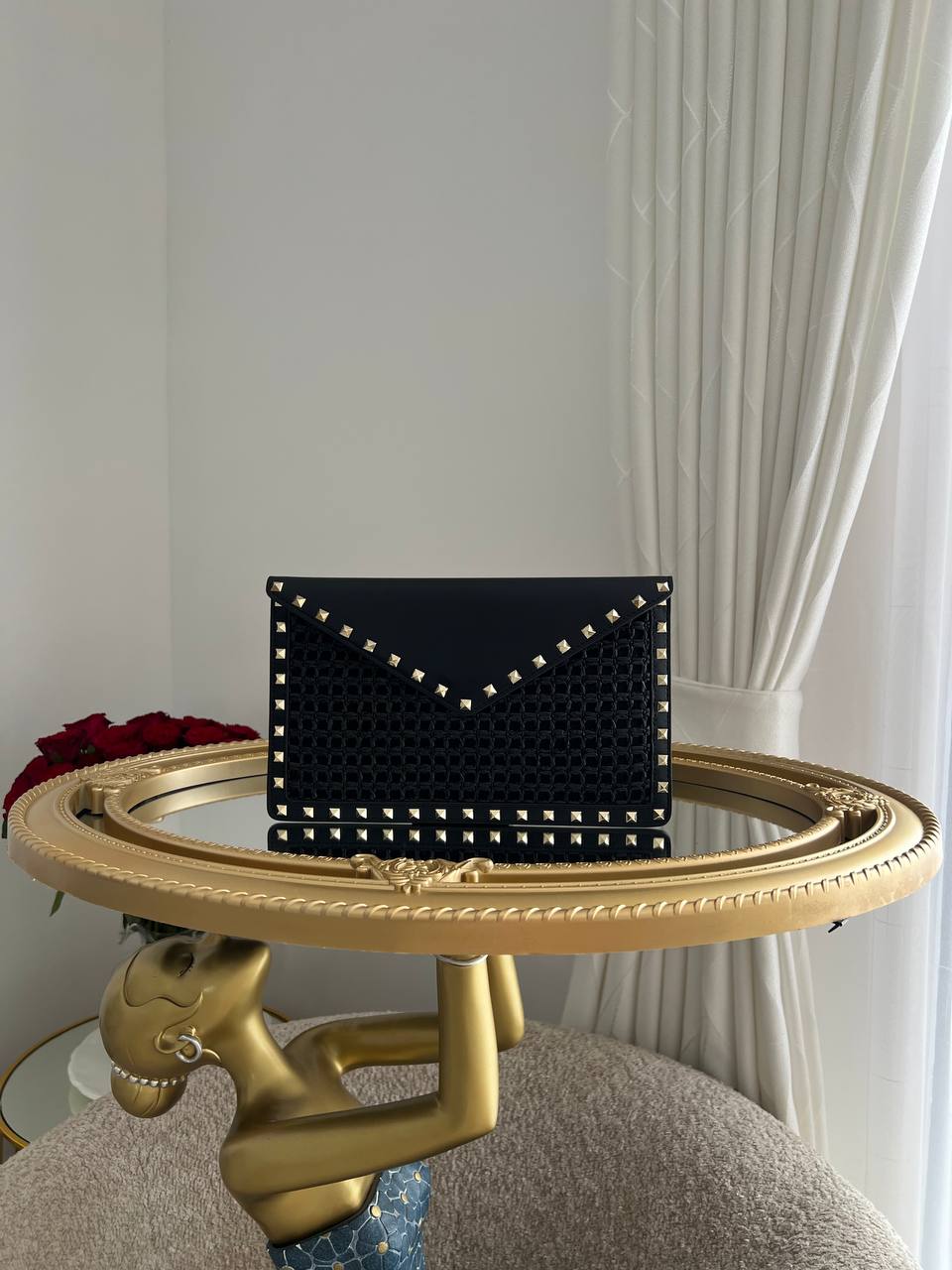Valentino Garavani Rockstud Woven Envelope Clutch.